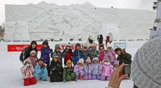 名古屋便30年 記念のアーチ*今年第1便旭川に