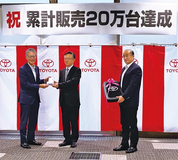 ATPグループ(旭川トヨペット・ネッツトヨタたいせつ)では9月25日、旭川トヨペット㈱が1956年7月の創業以来、9月で累計販売台数20万台を達成したことを記念し、同社神居店のショールームで式典が行われました。同社の遠藤穣社長は、「販売台数20万台という結果は、社員一人一人の弛まぬ努力とお客様のご愛顧に支えられて達成できたこと。来年、旭川トヨペットが創業70周年を迎えるにあたり、これまでと変わらず地域に信頼され、必要とされる企業を目指し、次の30万台、50万台に向けて邁進したい」と述べました。また、20万台目を購入された花本建設㈱(旭川市)には、遠藤社長より鍵と記念品が贈呈されました。