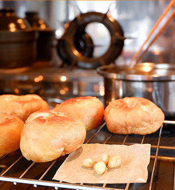 ドーナツ作りは成形から。できたてを食べます。