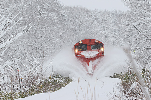 あけましておめでとうございます。この連載も20回近くになりましたので、冬が巡ってくるのは2回目となります。昨冬も取り上げましたが旭川の撮り鉄にとって、冬といえばやはり全国的な人気を誇るラッセル車!今冬も「無事」、宗谷本線の除雪仕業には国鉄時代から北海道の冬を守って来た羽根付きのDE15型ディーゼル機関車が当たっています。紙面に載せた12月11日の走行シーンは真っ白な木々の中、ラッセル車が美しく雪を跳ね上げなかなかの光景でした。積雪量、雪質、車両の速度など、さまざまな要素で雪の跳ね姿がまったく変わるラッセル車撮影、ハマるリピーターが多いなかなか深き沼なのです。