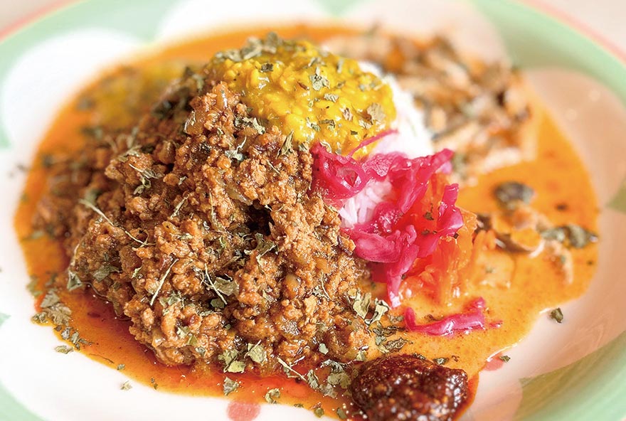 西神楽の「コトブキスパイス」は、スパイスカレーのお店。水はミネラルたっぷりの浄水、油は国産のこめ油などを使用、添加物不使用の調味料に至るまで、こだわりの食材を厳選しています。「小麦粉や乳製品、化学調味料等も一切使っていないので、アレルギーのある方やビーガンでも安心して食べられます」と話すのは、店主の亀濱正哉さんです。4種のスパイスをベースにしたカレーは日替わりで、 “鰹節を使った和だしのカレー”のように独自のアレンジを加えて提供しています。実は、3月末で現在の場所での営業を終え、すぐ近くの場所へ移転する予定だそう。今のお店の雰囲気とともにカレーやスイーツを堪能したい方は、お早めに。