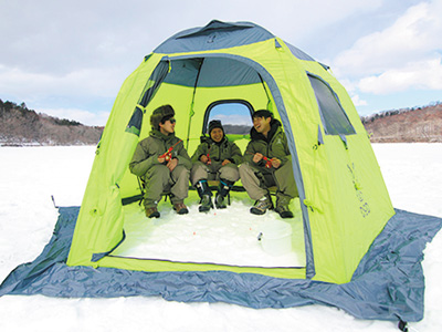 氷の下のお魚を釣り上げよう!何が釣れるかはお楽しみ。