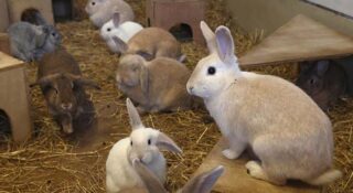 【写真説明】こども牧場の建物内は厳冬期も18度に保たれ、多くのウサギが来園者を待っている(熊谷洸太撮影)
