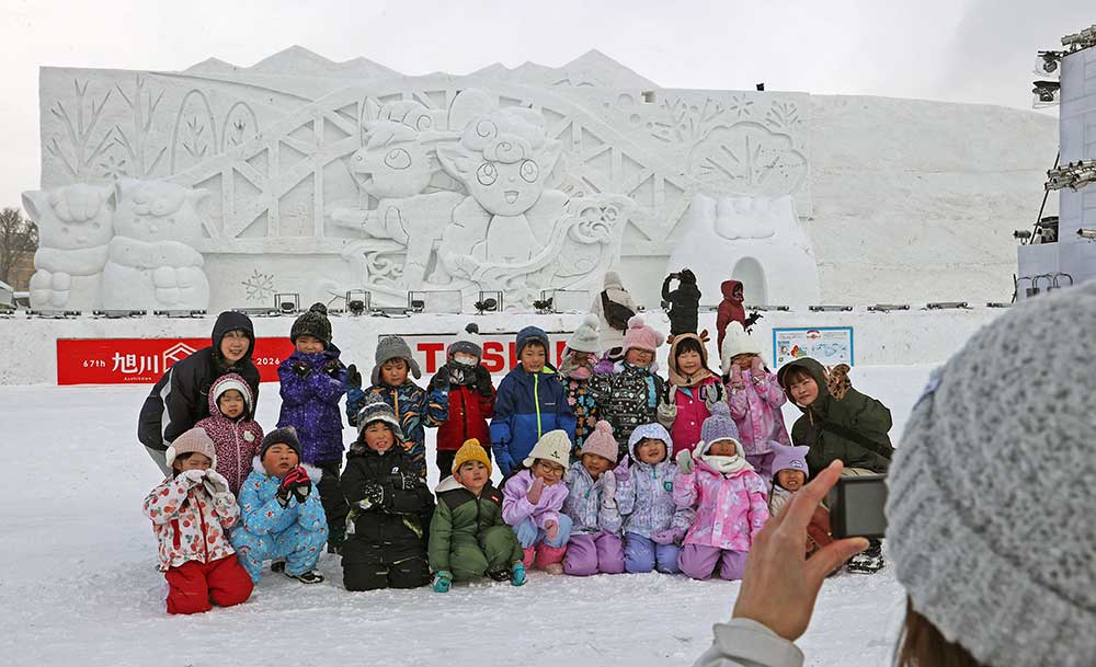 【旭川】道北最大の冬の祭典「第67回旭川冬まつり」(実行委主催)が2月6日、旭川市の石狩川旭橋河畔を主会場に開幕した。会場には人気アニメ「ポケットモンスター」のキャラクターなどの大雪像が並び、大勢が訪れた。