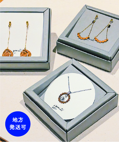 旭川を離れる友人に「旭川らしいもの」をプレゼントしたいと思い、旭川デザインセンターで見つけたアクセサリーです。木とガラスを使い、身につけている人にそっと寄り添う軽やかなデザインになっています。木の部分は家具に使われる突板に特殊な加工を施しているので、壊れにくいそうです。ガラスパーツも手作りのため大きさや形が違うので、選ぶ楽しさも魅力です。イヤリング、ピアス、ネックレスがあります。