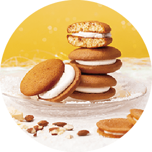 砕いた「き花」のガレットが入ったブッセ生地に、ホワイトチョコレートを練り込んだバタークリームをサンドしました。1個250円
