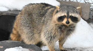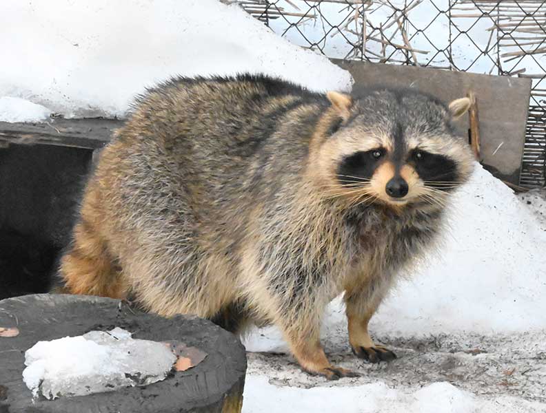 【写真説明】北海道産動物舎にいるアライグマ「しんしん」