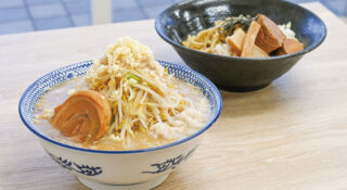 2月20日にオープンした「狼豚」は、麺にこだわりを持ったラーメン店です。太麺を専門として提供する2種類の麺は、共に自家製です。“狼豚ラーメン(1,080円)”のみ選択可能な平打ち麺は、コシと小麦の香りが強い小麦粉「オーション粉」を十割使用。「春よ恋」をメインに3種の小麦粉をブレンドした全粒粉入り太麺は香りが良く、コシともっちりとした食感を楽しめるよう仕上げています。卓上に置かれたラー油などの調味料も自家製で、サイドメニューのから揚げも手作りと、おいしさのために妥協はしません。また、食券制で麺やトッピングの量を食券に書き記して店員に渡すスタイルなので、オーダーを伝えやすいのも特徴の一つ。食べ応えのある一杯をぜひ味わって。