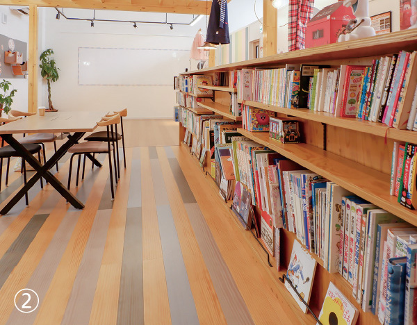 ②ぎっしりと並ぶ本はまちの人からの寄付によるもの